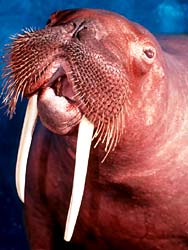 So what am I saying here? Well in truth I'm not sure. Certainly noting the similarities between a walrus's tusk and a sabre toothed tiger's sabre gets me no nearer to answering the original question about sabre toothism i.e. why would such delicate teeth that were probably an encumbrance to hunting develop separately at least four times in three orders of mammals? |