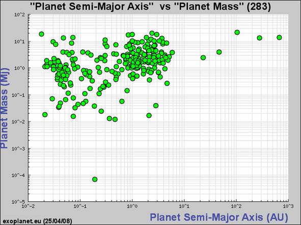 distance). In the diagram the planets with Earth like or sub Earth masses tend