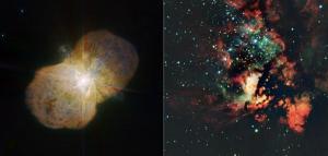 Eta Carinae is surrounded by an expanding bipolar cloud of dust and gas known as the Homunculus ('little man' in Latin), which astronomers believe was expelled from the star during a great outburst seen in 1843 [1].